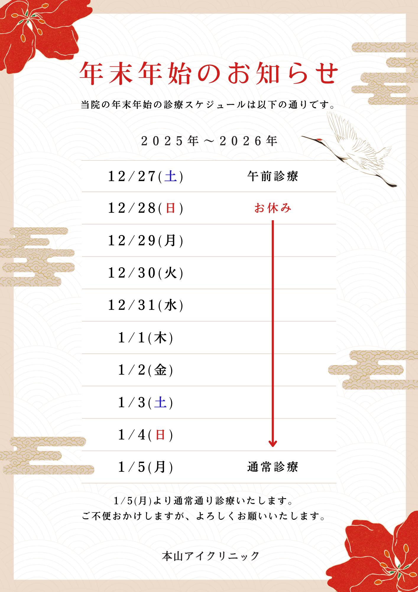 当院の年末年始スケジュールをご案内致します。